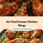 These air‑fried Korean chicken wings offer a delicious, crispy, and flavorful alternative to traditional deep‑fried wings — all with less oil and fuss. Whether you’re making them for a quick weeknight dinner, a casual get‑together, or a snack with friends, this recipe delivers that crave‑worthy sweet‑spicy glaze and satisfying crunch. Once you try them, they’ll likely become a regular in your recipe rotation.