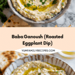 Baba Ganoush is a creamy, smoky Middle Eastern dip made from roasted eggplant, tahini, olive oil, lemon juice, and garlic. It’s perfect as an appetizer or a healthy snack with pita or veggies.