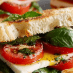 This Caprese Sandwich is a fresh, flavorful twist on the classic Italian Caprese salad, layered with juicy tomatoes, creamy mozzarella, fresh basil, and a drizzle of balsamic glaze, all tucked into a crusty baguette.