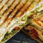 This Chicken Pesto Panini is a flavorful and satisfying sandwich made with cooked chicken, provolone cheese, tomato, and pesto, all grilled to golden perfection between slices of hearty whole-grain bread.