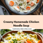 Creamy Homemade Chicken Noodle Soup is a simple and satisfying recipe that delivers comfort in every bite. With tender chicken, soft carrots, hearty pasta, and a rich creamy broth, it’s the kind of meal that feels homemade without taking hours in the kitchen. Whether you make it for a quick family dinner or save a batch for leftovers, this soup is sure to become a reliable favorite.