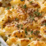 It might look split after the covered bake stage. That’s just how cream behaves when cooked for a long time. After baking and resting, the sauce reduces and the texture is fine.