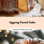 Eggnog Pound Cake is the perfect way to celebrate the season. With its warm spices, buttery texture, and sweet eggnog glaze, it’s a dessert that feels like a cozy holiday hug. Whether you’re serving it at a festive dinner or enjoying a quiet moment by the fireplace, this cake delivers nostalgic flavor and irresistible charm. Try it once, and it just might become your new seasonal tradition.