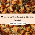 A classic homemade Thanksgiving stuffing recipe passed down through generations. This savory dish features seasoned bread cubes, sautéed vegetables, and a rich, buttery flavor perfect for holiday feasts.