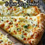 A high-protein, low-calorie cheesy garlic pizza made with protein-rich dough, part-skim mozzarella, and a creamy garlic spread. Perfect for a lighter comfort meal or post-workout dinner with over 30 grams of protein per serving.