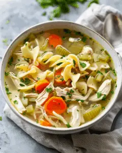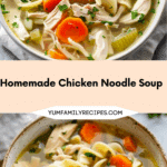 This classic homemade chicken noodle soup is comforting, hearty, and made from scratch with tender chicken, vegetables, and egg noodles in a savory broth.