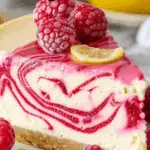 This Lemon Raspberry Swirl Cheesecake is a rich and creamy dessert with a tangy lemon flavor and a beautiful raspberry swirl, set atop a buttery graham cracker crust.