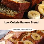 A moist and fluffy low calorie banana bread made with ripe bananas, Greek yogurt, and simple wholesome ingredients. This lighter version is naturally sweetened and perfect for a healthy breakfast or snack.