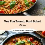 One pan tomato basil baked orzo is an easy, comforting dinner with simple ingredients and rich, cheesy flavor. It is flexible, satisfying, and perfect for a quick weeknight meal.