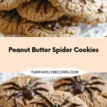 Fun and spooky peanut butter spider cookies made with rich peanut butter flavor and topped with chocolate and candy eyes—perfect for Halloween treats or a themed party snack!