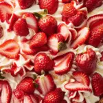 - Arrange sliced strawberries evenly over the cream cheese layer.