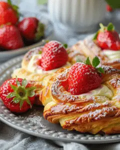 - Make the Filling: Beat cream cheese, powdered sugar, lemon juice, and vanilla until smooth. Fold in finely chopped strawberries.