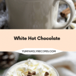 This rich and creamy White Hot Chocolate is a cozy, indulgent drink made with real white chocolate, milk, and vanilla. It’s perfect for warming up on chilly days and can be customized with your favorite toppings.